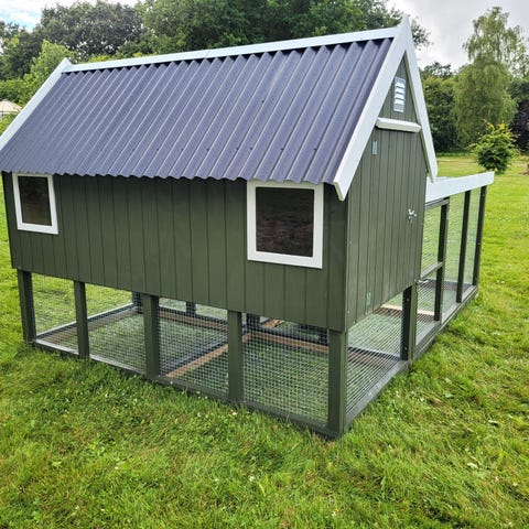 Hønsehus med gård overdækket m/ net tag, og fuld rotte/ræve sikret.