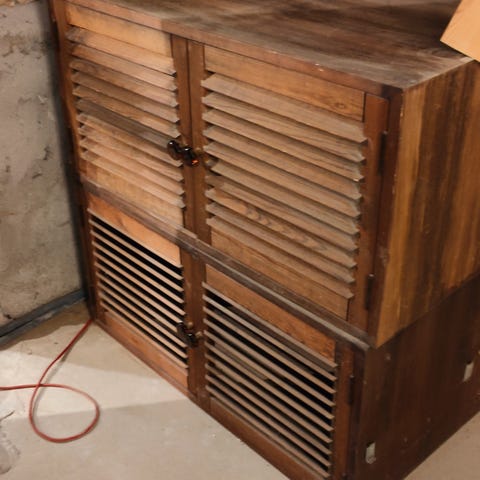Skab med overdel til breve eller lignende. Der er skiveplade i skabet. Det 2 delt. Sælges kun samlet for 750 kr.