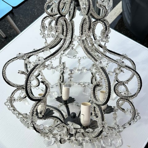 Prismelysekrone med 5 pære i. Preben genbrugsshop-Nakskov.