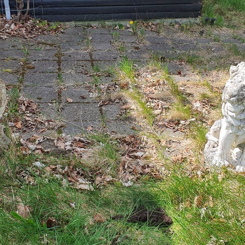 Stor, gammel løvefigur til haven. Fra omkring år 1920. (havefigur 2)
