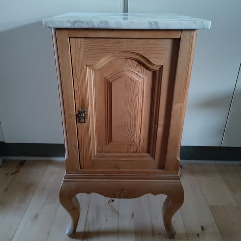Lille afsyret skab med marmorplade. Det kan males igen.