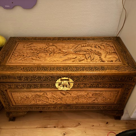 Udført i lakeret fyrretræ, med flot tidssvarende patina, i forhold til kistens alder.