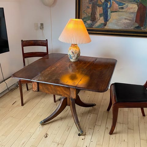 Antikt, engelsk pubbord i støbejern med løs mahogniplade