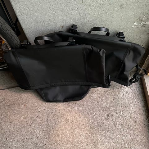 Top bikepacking tasker fra Apidura. Begge vindtætte, lette og meget nemme at håndtere.
