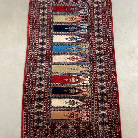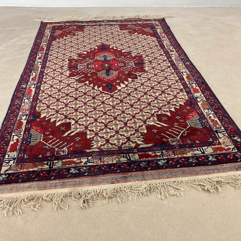 Virkelig fint ægte tæppe håndknyttet i uld i flotte traditionelle farvekombinationer og mønstre. Særlig fin slidstærk og kvalitets knytning.