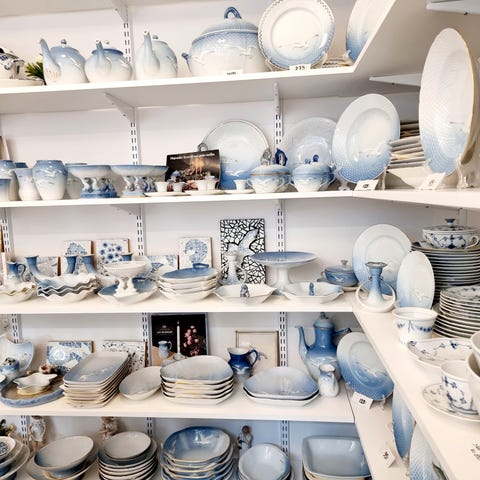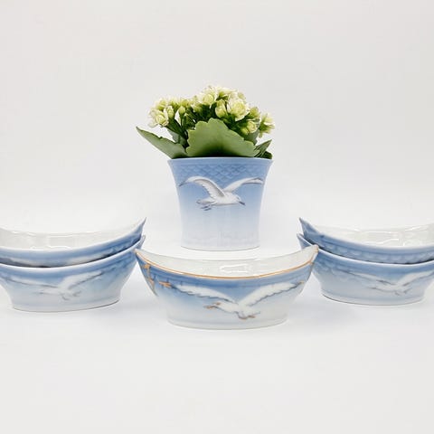 Fremstår alle I fin stand, helt uden skår og revner, enkelte dele kan godt have brugsspor, små blå glasurprikker, små produktionsfejl, micro afbrænnings prikker, alle dele er lavet i tidsperioden 1948 til 1969.