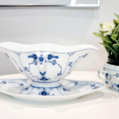 Her har vi sovseskålen, så sovsen serveres med stil, Musselmalet Riflet når du skal ekstra hygge om dine gæster, en gæst føler sig mere værdsat, når værten dækker et smukt bord, siden 1775 har Musselmalet skabt historie, nu kan du skabe dejlige minder om hyggelige middag🥰