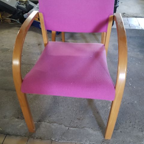 4 stole I bøg med høj ryg. Sæderne trænger til rens. Sælges kun samlet for 200 kr . For alle 4 stole. Prebensgenbrugsshop-Nakskov Lolland Falster.