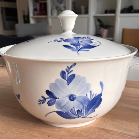 Super smuk terrin med hul til skeen, og anvendelig til rigtig mange ting.
