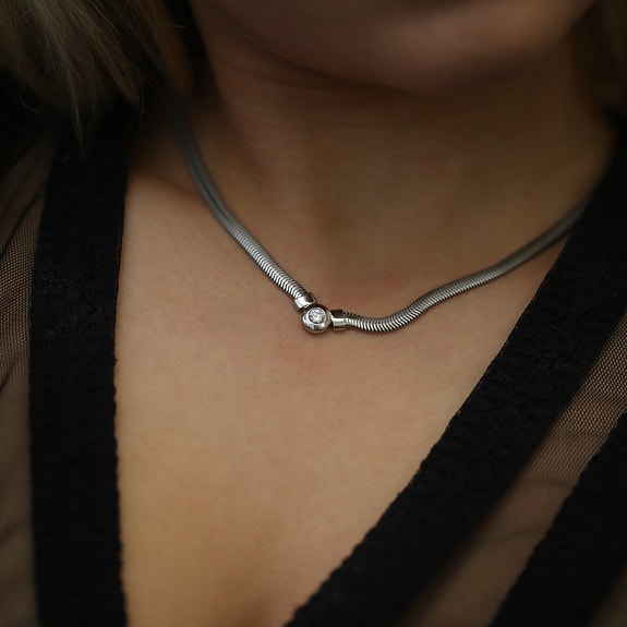 Hvidgulds halskæde med hjerte vedhæng (diamanter)