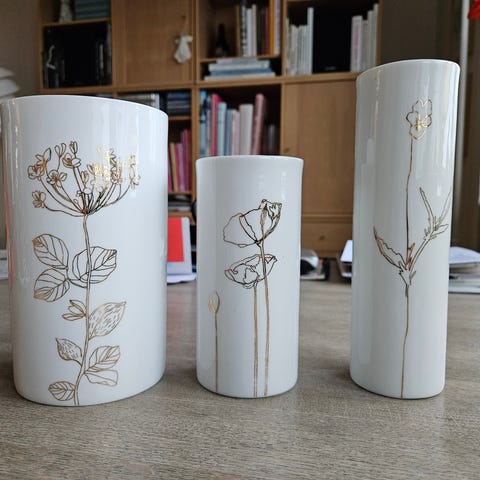 Alle vaser fremstår i rigtig flot stand, helt uden skår og revner, med minimale brugsspor, 2 sortering kan der godt forekomme små glasurfejl, blå glasurprikker og afbrænnings prikker.