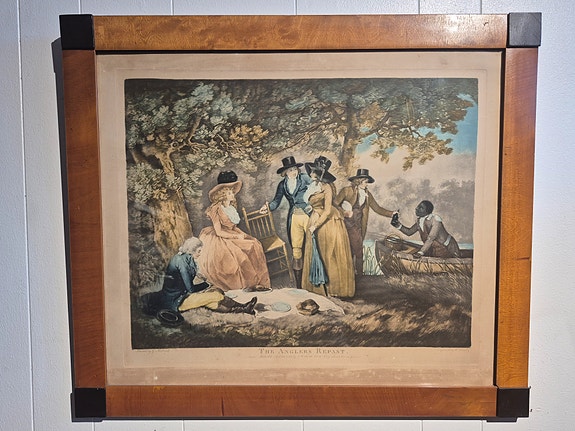 Mahogni skærm, med broderi, højde 118 cm., sen empire.