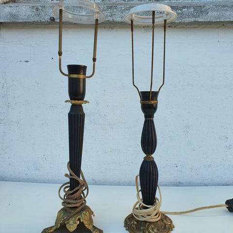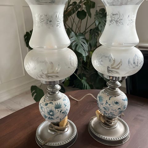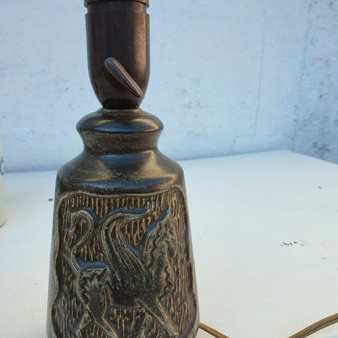 Lampe der er lavet til strøm i gammel stil. Den er 60 cm. Høj med glas skærmen. Preben genbrugsshop-Nakskov