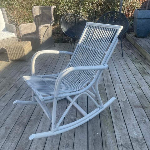Super flot gyngestol i lyst træ og bambus.