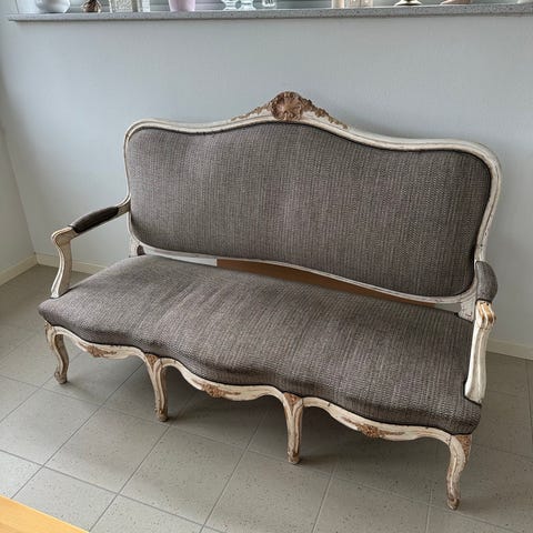 Herskabeligt udført, med udskæringer på arm-/ryglæn, samt på front og ben.