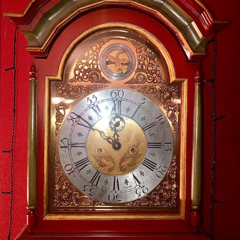 Pænt ur, malet i råhvid, med guldstafferinger.