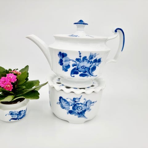 Blå blomst fyrfadsvarmer med Porcelæn Rist, så kan du holde dine varme drikke, altid varme her i den kølige vintertid💙