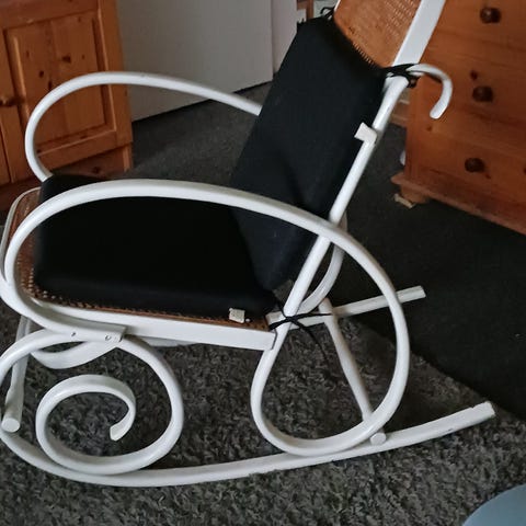 Sort gyngestol med fransk flet i god stand uden nogen skader på fletten.