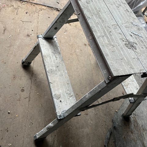 Solid trappesige i alu med 5 trin. Højeste platform er 100 cm over jorden.