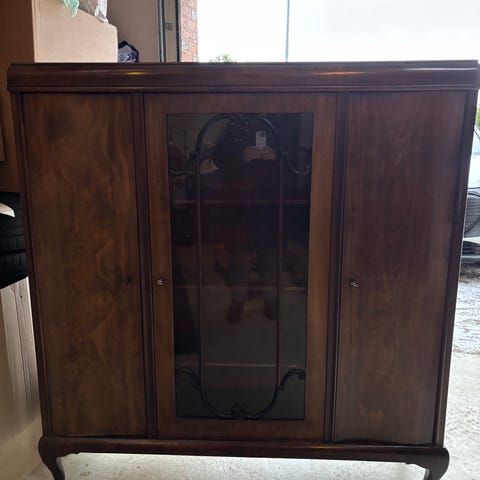 Skabet er klargjort, slebet og nyolieret og målene ses på et af billederne.