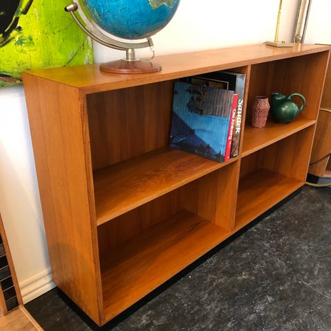 Flot teak bogreol med skab i midten - hylden kan tages ud af skabet
