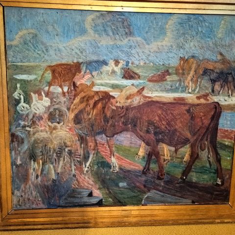 Kalve på Saltholm, sign. 1953, olie på lærred.
