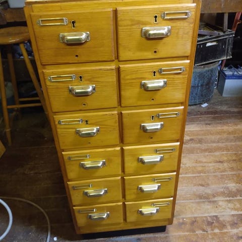 Skabet er ikke komplet, hvilket prisen er sat efter.