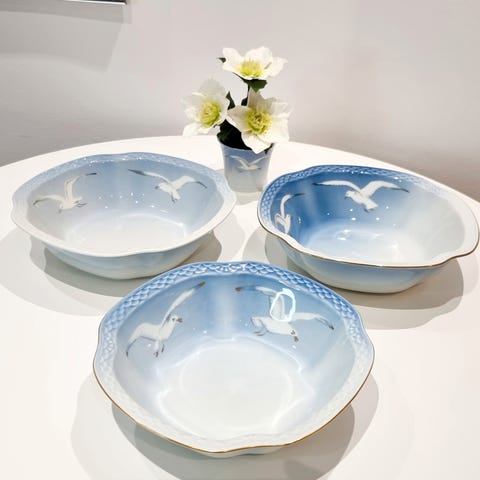 Fremstår alle helt uden skår og revner, med minimale brugsspor og fine guldkanter, 2 sortering kan der forekomme på enkelte dele små ujævnheder, små glasurfejl, små blå glasurprikker og små afbrænnings prikker som stammer fra produktionen.