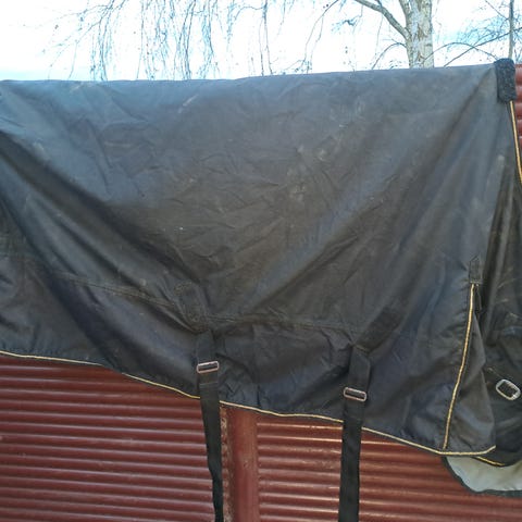 Dækken, Dækken, Ældre Aces vinter dækken str 135cm. Antal gram ukendt. Sort med reflekser. Har en skade i inderforet der skal repareres og slid ved refleksstriben på den ene side. Skal have nye bagbensstropper. Ej vasket.