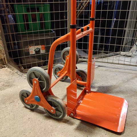 Brugt elektrisk sækkevogn til trapper. CargoMaster C171 Vario er den kompakte og fleksible version af AAT Alber el-trappesækkevogne. Cargomaster c170 har en bæreevne på 170kg, og kan nemt indstilles i højden for bedre komfort eller ved transport. Super nem at bruge. Der er lige skiftet batteri.