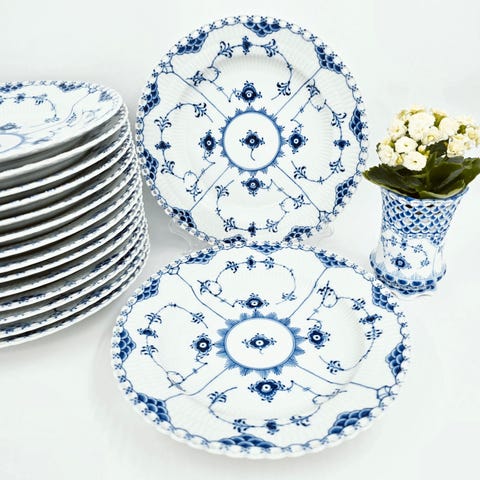 Her har vi Helblonde Middagstallerken, de er indbegrebet af elegance, dæk et stilfuldt bord, med en historie der går mange generationer tilbage🥰 de er fantastiske til at mixe og matche med andre smukke stel.