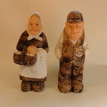 Håndlavet figur, skøn gammel frue , ERO, Skøn dansk vintage håndlavede figurer i vildt autentisk håndskåret “Træ-look”