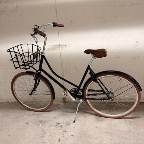 Vi sælger denne Bike by Gubi. Cyklen har både en Abus foldelås og en standard cykellås, begge med tilhørende nøgler, så du kan føle dig ekstra sikker, når cyklen er parkeret. Den ene bremseklods er lidt slidt, men bremserne fungerer ellers fint.