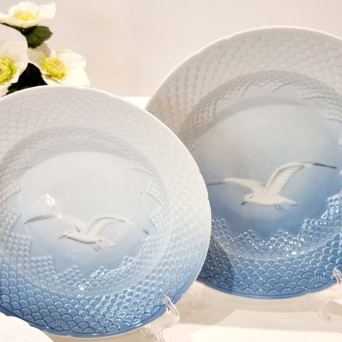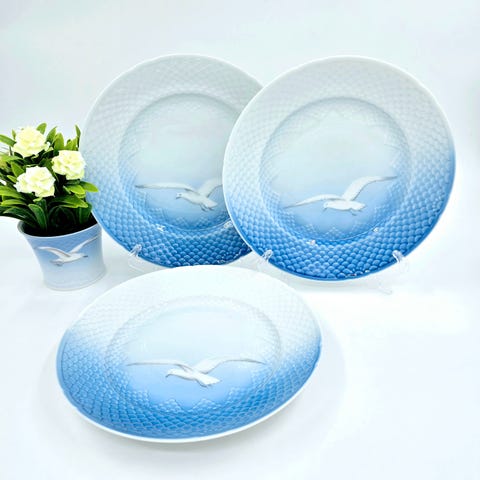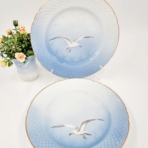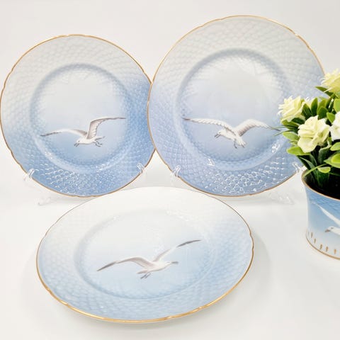 Flotte frokosttallerkener I mågestel med guldkant, bland dem med de andre flotte stel fra Royal Copenhagen eller hvad du har i din samling, er super moderne og den blå farve er bare skøn💙💙