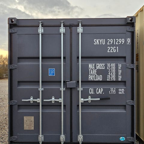Lækker ny 20 fods container I Titanium grå med easy lock og lockbox.