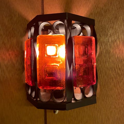 5 styk pokkers smukke Midcentury Opaline glass væglamper med messing ophæng.