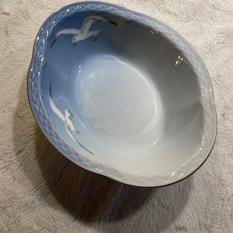Her har vi en flot opsats, lavet af originalt mågestel fra Bing & Grøndahl, men det er ikke Bing & Grøndahl der har lavet selve opsatsen.