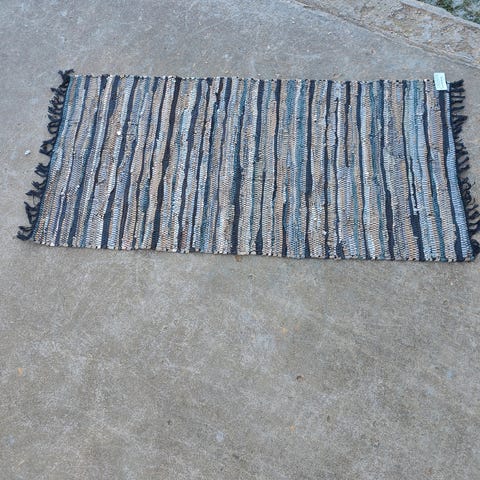 Der er 4 stk tæpper i alt og de er som sagt helt nye (aldrig brugt). De er lavet af læder strimler og målene ses på et af billederne.