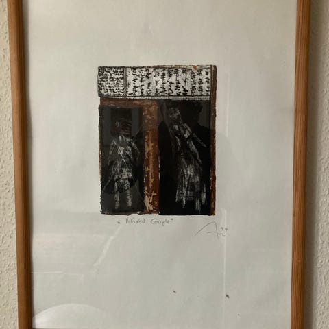 Motiv af kyssende par, som kun lige anes, ved nærmere kig på kunstværket.