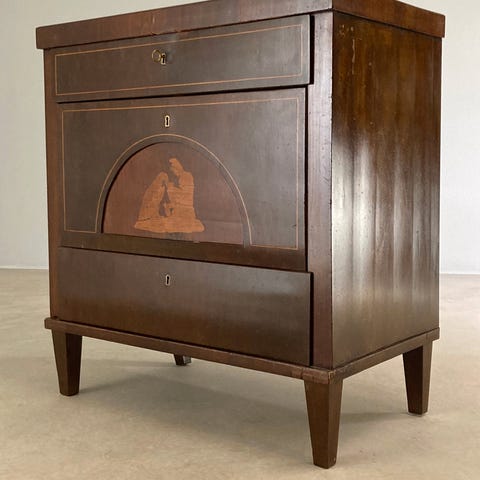 Empire kommode smukt udført i egetræ med indlæg bl.a. af intarsia antikt møbel