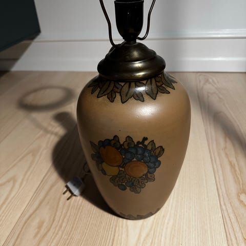 L. Hjorth - bordlampe i hvidglaseret keramik - m/ figur i relief. L. Hjorth Danmark 655.