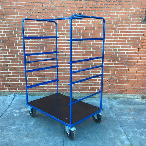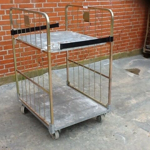 Ren, pæn og rummelig pakkevogn / rullecontainer i flot stand – perfekt til pakkesortering, lagerhåndtering, butik eller transport. Bevæger sig nemt på velfungerende hjul.