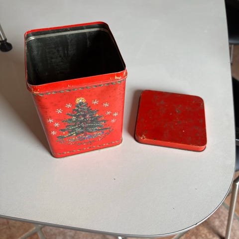 Kagedåse, Jule hyggelig lille engelsk dåse med motiv af julemand og julemandens kane.