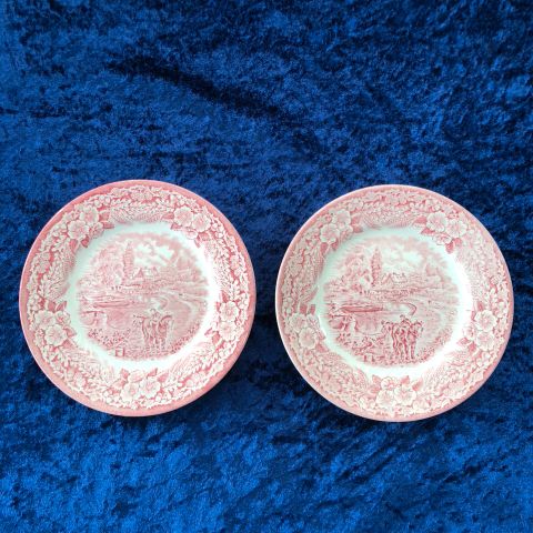 Ægte Staffordshire keramiktallerken med motiv af 2 parakitter.