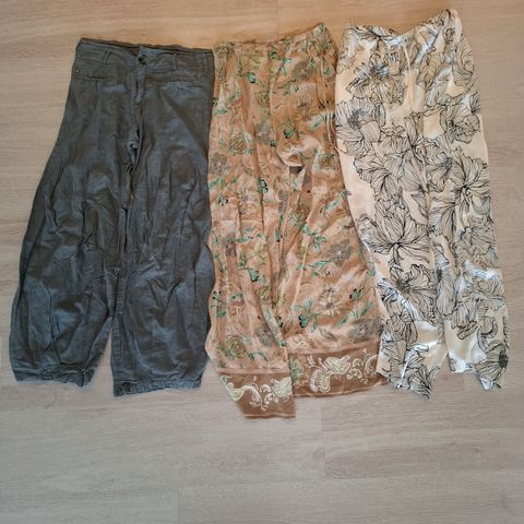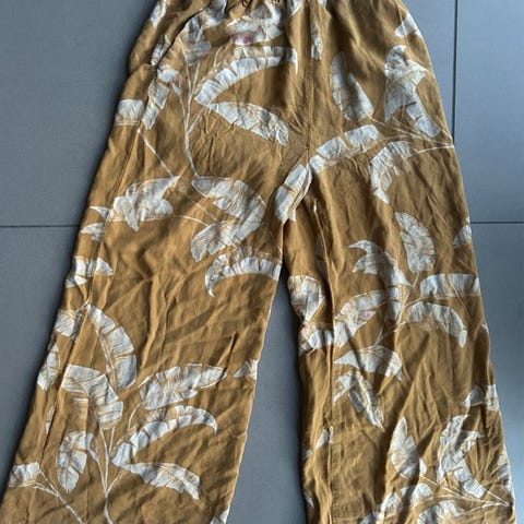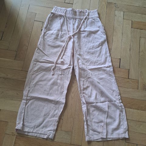 Skiltet siger størrelse 36, men da bukserne er krympet lidt i vask, er de nok nærmere størrelse 34.