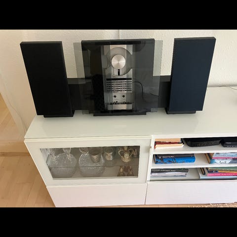 Bang & Olufsen - BeoSound Ouverture. Det velkendte og klassiske audio system med de elegante glaslåger, som elegant åbner sig, og byder dig velkommen, når du nærmer dig. Tilslut Bang & Olufsen aktive højttalere eller køb en B&O forstærker til 1000,- hvor du kan bruge dine eksisterende gamle passive højttalere.