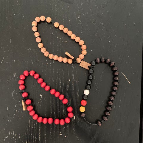 Spændende vintage palisander armbånd sammensat med sort elastik snor.