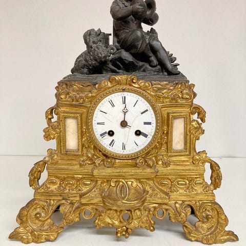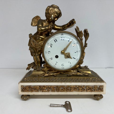 Spændende pompøst sort marmor kaminur med nøgle.
