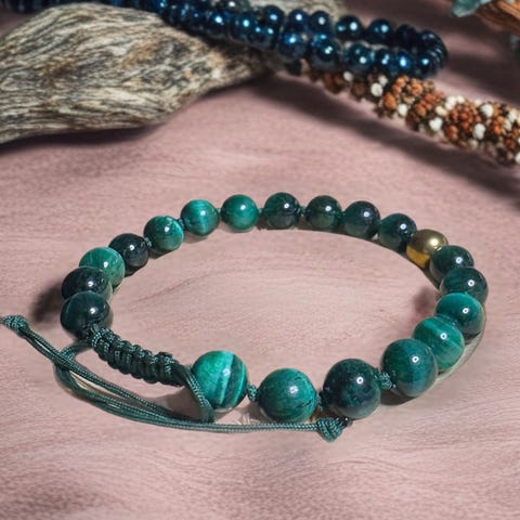 Herrearmbånd, 19cm håndled i 8mm farvet tigerøje med knuder imellem og med ekstra stærk forgyldning på stor lås. Altså ikke noget pullerværk for store fingre.