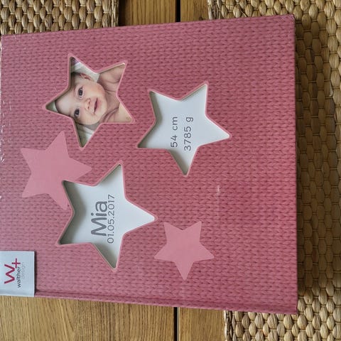 Fotoalbum. 208x305 cm. 56 sider. Hvidt/creme farvet omslag med sødt bamsebillede.